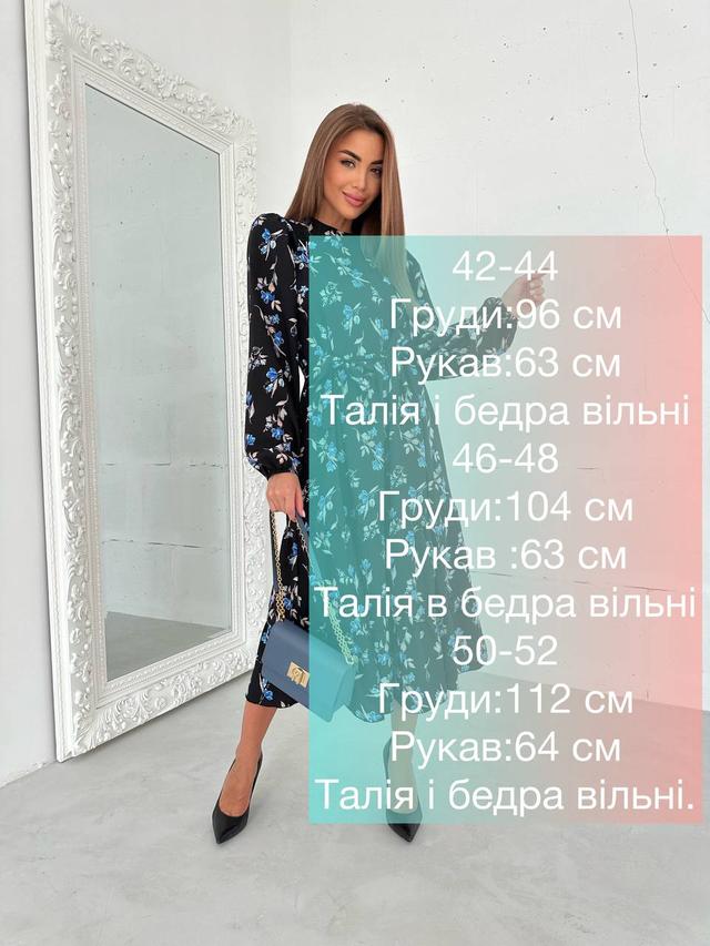 Квіткове міді плаття під пояс із розкльошеною спідницею та довгими рукавами (р. 42-52) 2035375