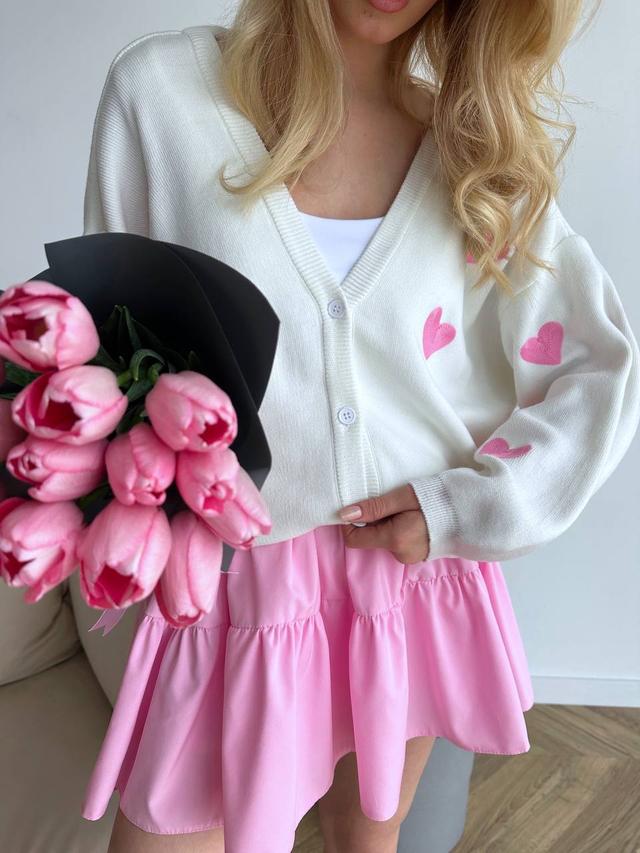В'язаний кардиган оверсайз на ґудзиках із принтом серця (р. 42-48) 909550