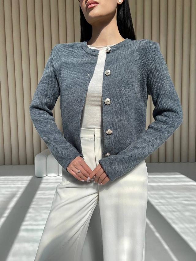 Короткий в'язаний кардиган жакет жіночий на ґудзиках (р 42-46) 409551