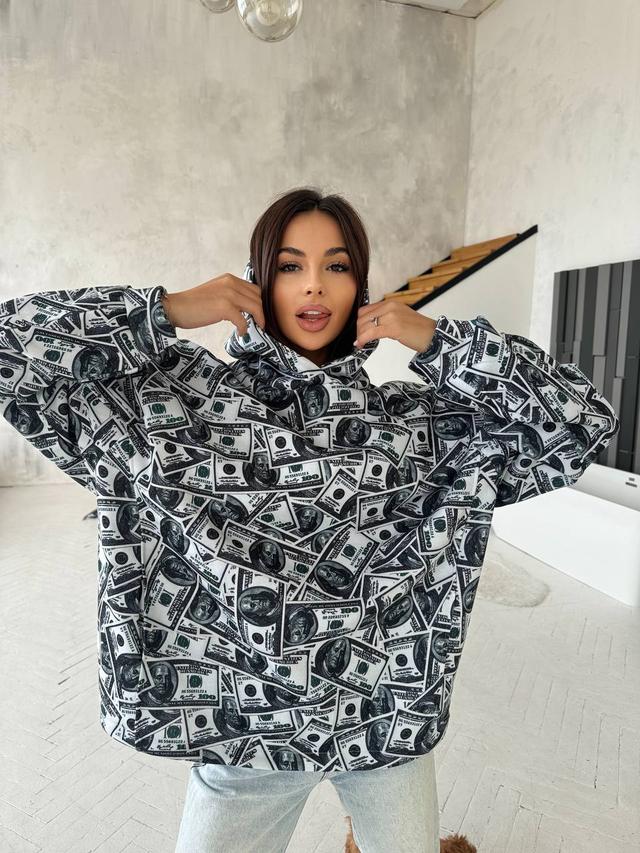 Жіноче тепле худі оверсайз із тринитки на флісі з капюшоном і принтом 63043378