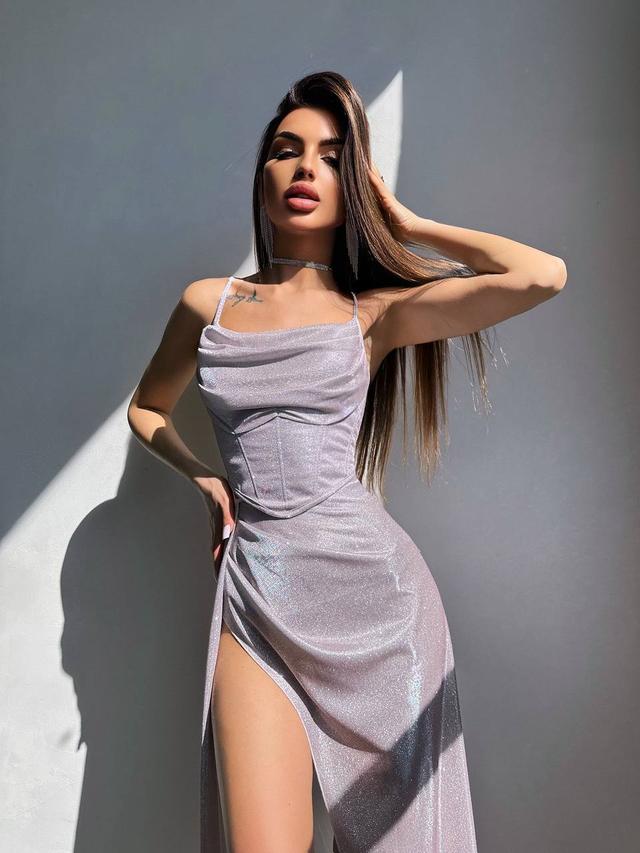 Вечірня сукня двійка корсет на бретелях і шнурівці та спідниця максі з розрізом (р. 42, 44)