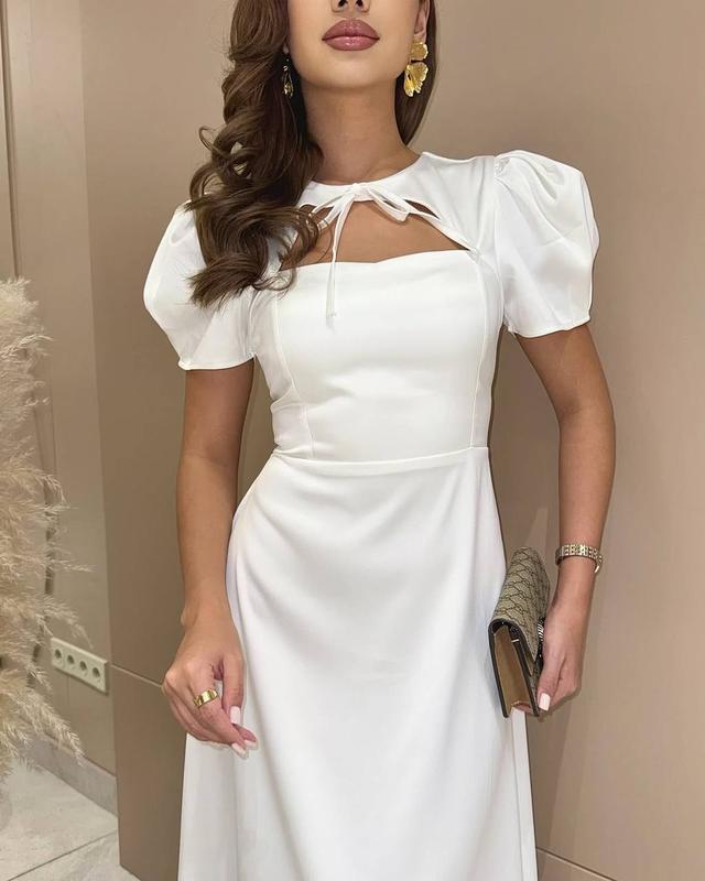 Приталене максі плаття з розкльошеною спідницею та короткими рукавами ліхтариками (р. 42-48)