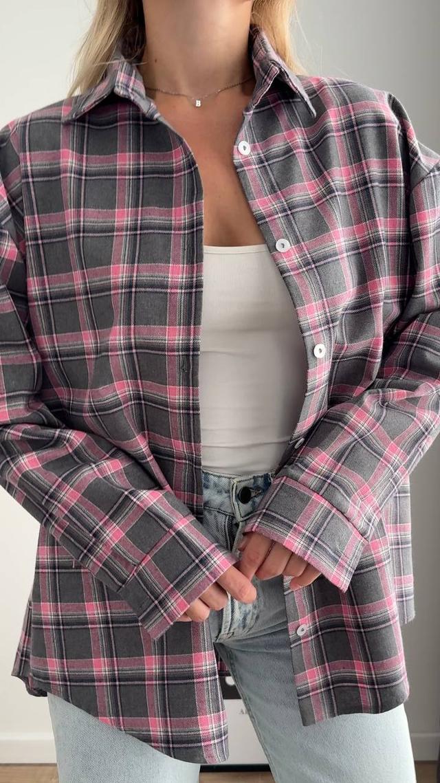 Молодіжна жіноча сорочка в клітинку вільного фасону (р. 42-46)